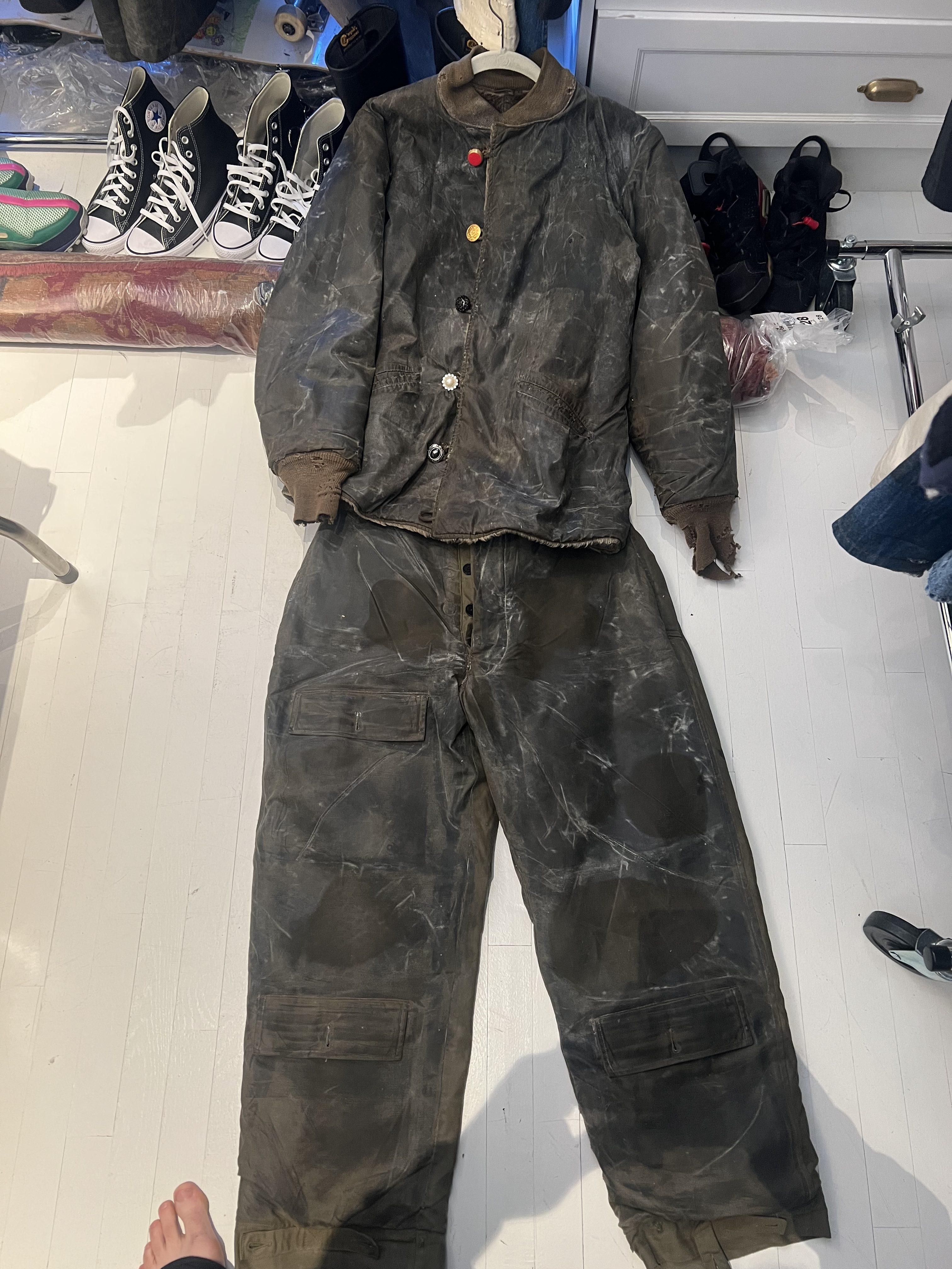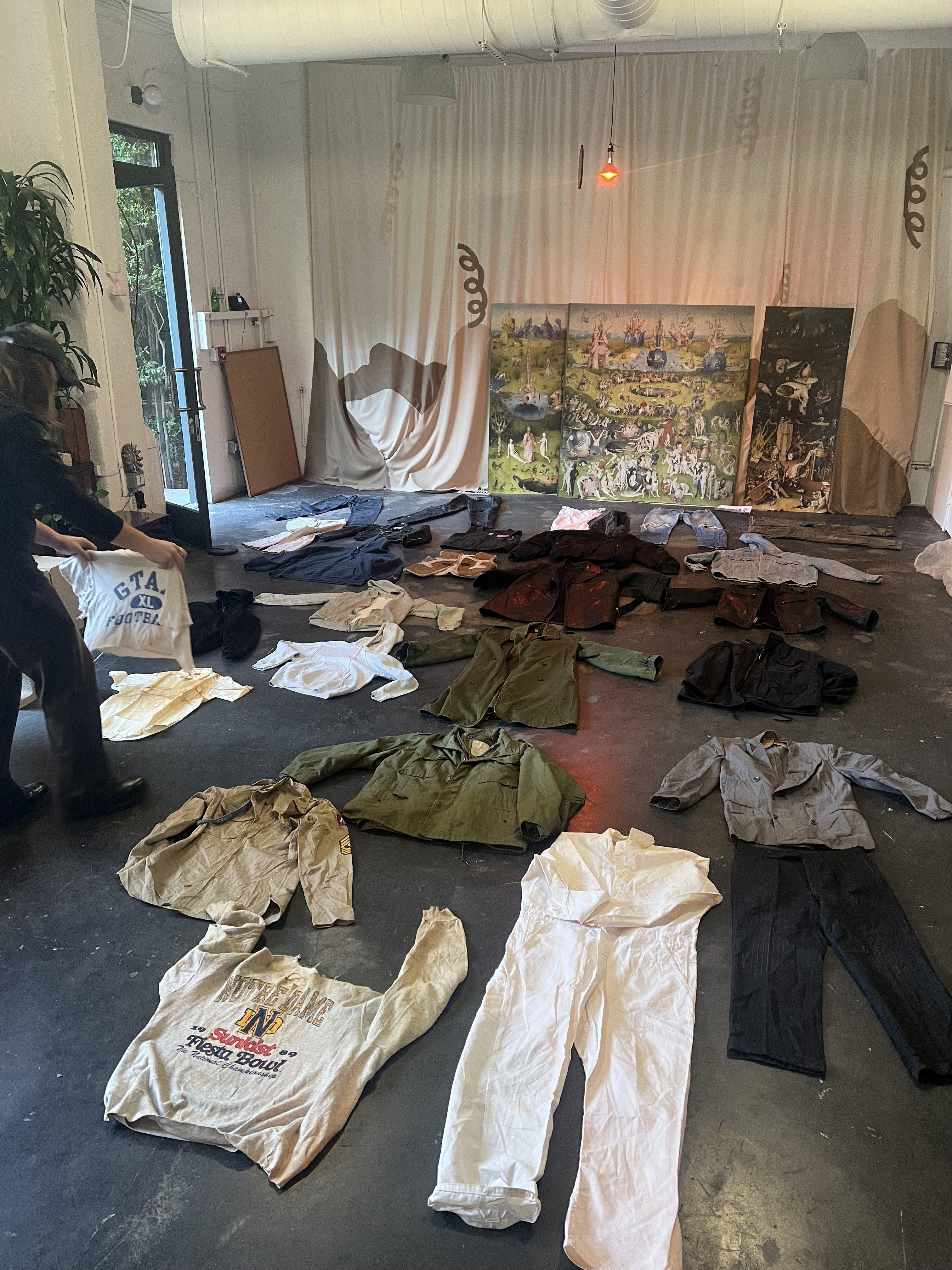 Thats what we were trying to figure out, how the fuck do we go from these prototypes that are actually vintage, hand sewn, hand dyed, waxed, distressed etc into Production pieces.