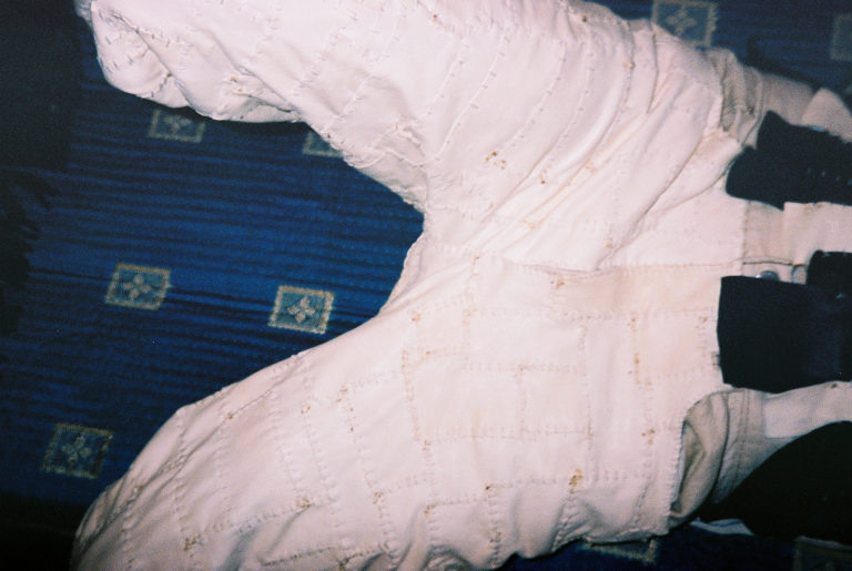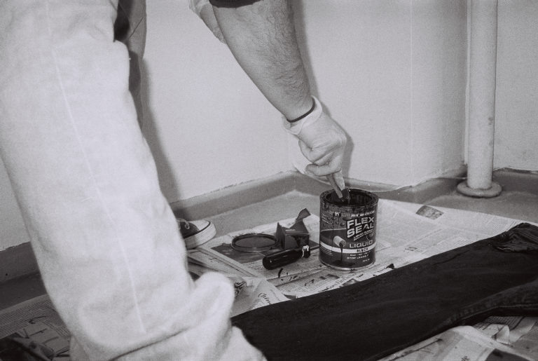 We had found this white one, but we hadn't figured out what exactly to do with it, its classic, but boring. as we were building the essence and identity of the brand, we were trying to figure WHAT could make this item "Marking Distance". James had really good waxing and bleaching techniques, but as the brand was coming to fruition we also knew that fetishism was one of our big inspirations.