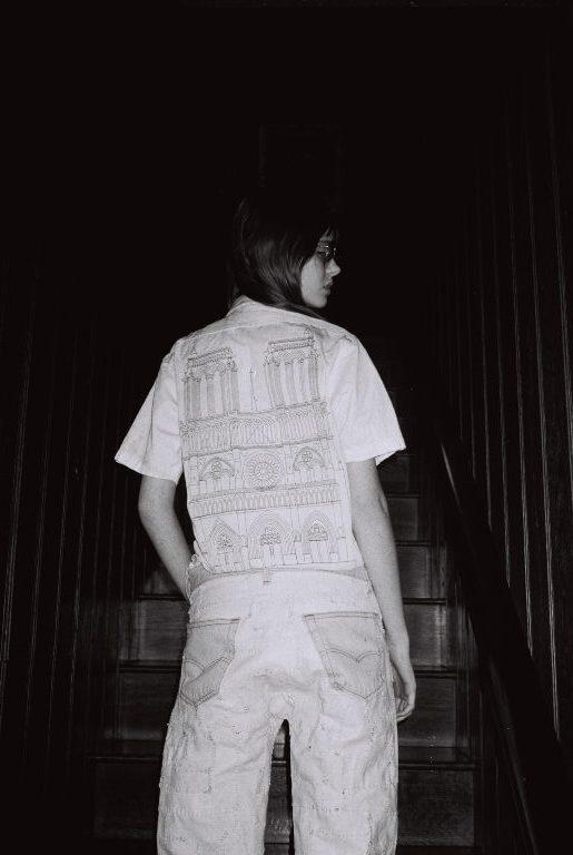 production was tough because trying to get that texture + finding enough of the same vintage buttons wasnt easy, but if you zoom it, you would see all of these rips in the item, which are then all repaired by hand (inspired by japanese sashiko, a style of repair)
